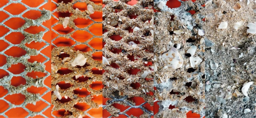 Au contact des sédiments et des débris coquillers avoisinant, une concrétion rocheuse se constitue sur la structure cathodique et vient s'agglomérer à ce dépôt calcomagnésien, créant ainsi le GEOCORAIL®, une roche naturelle, à l'aspect et aux propriétés proches du corail naturel.