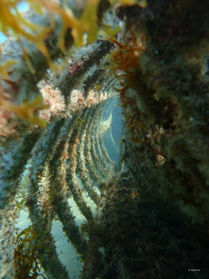 Sur la base d'une structure en acier brut, qui peut prendre des formes diverses selon les besoins, les récifs SEACURE sont conçus et dimensionnés de manière à optimiser la surface colonisable, grâce à une complexité structurelle qui augmente le volume d'abri pour les post-larves et les juvéniles afin de les protéger des prédateurs.